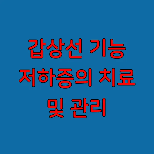 갑상선 기능 저하증의 치료 및 관리