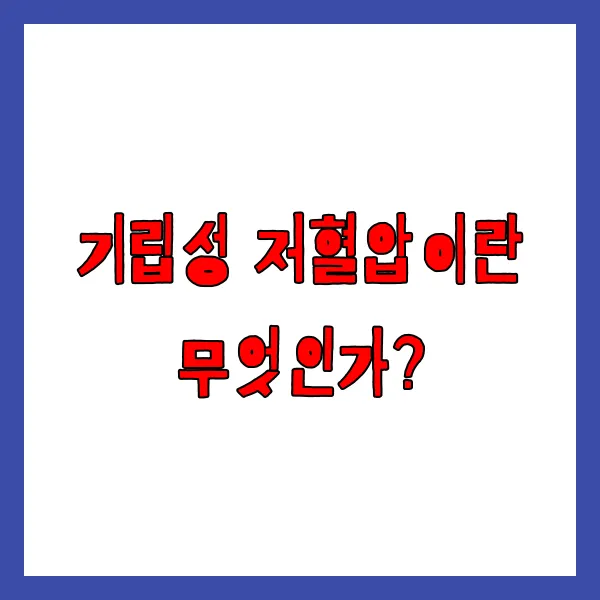 본 정보가 기립성 저혈압에 대한 이해를 높이고 건강 관리에 도움이 되기를 바랍니다. 더 자세한 정보나 진단은 의료 전문가와 상담하십시오.