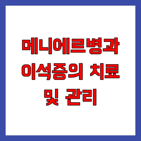 메니에르병과 이석증의 치료 및 관리