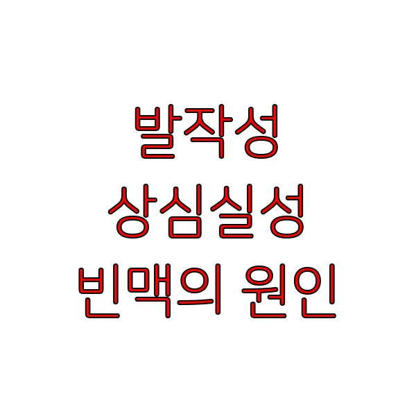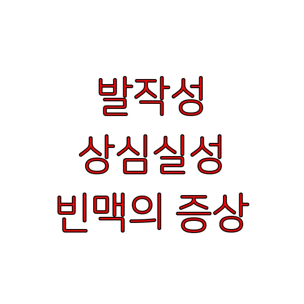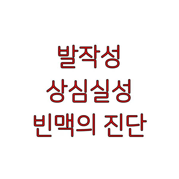 갑자기 심장이 미친 듯이 쿵쾅거리고, 숨이 차오르며 식은땀이 흐르는 경험, 해보셨나요? 얼마나 불안하고 두려우셨을지 짐작도 되지 않습니다. 혹시라도 이런 증상을 겪고 계시다면, ' 발작성 상심실성 빈맥 '일 가능성이 있습니다. 생소하게 느껴질 수 있는 이 질환은 심장 박동이 갑자기 빨라지는 부정맥의 일종 입니다. 본 포스팅에서는 발작성 상심실성 빈맥의 증상과 원인, 진단 및 치료 방법 에 대해 자세히 알아보겠습니다. 걱정하지 마세요. 함께 알아가면 두려움은 줄어들고, 희망을 찾을 수 있을 거예요. 지금부터 차근차근 발작성 상심실성 빈맥 에 대한 궁금증을 해소해 드리겠습니다.