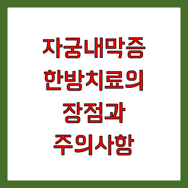 자궁내막증 ! 정말 끔찍한 질환이죠? 수술 후에도 재발 가능성이 높아 환자분들을 끊임없이 괴롭히는 질환이기도 합니다. 이러한 자궁내막증에 대한 한방치료는 최근 많은 관심을 받고 있습니다. 한방치료는 자궁내막증의 근본적인 원인을 개선 하고, 삶의 질을 향상 시키는 데 도움을 줄 수 있기 때문입니다. 하지만, 모든 치료법이 그렇듯 장점과 함께 주의해야 할 사항들이 존재합니다. 자, 그럼 한방치료의 장점과 주의사항에 대해 자세히 알아볼까요?